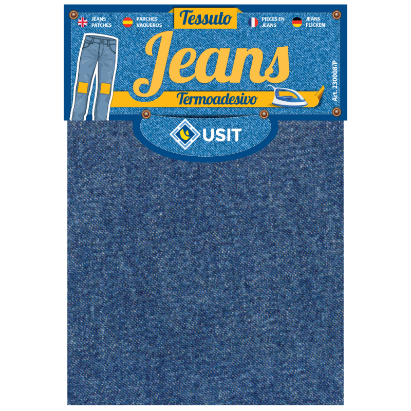 Tessuto Jeans termoadesivo in resistente tessuto denim.