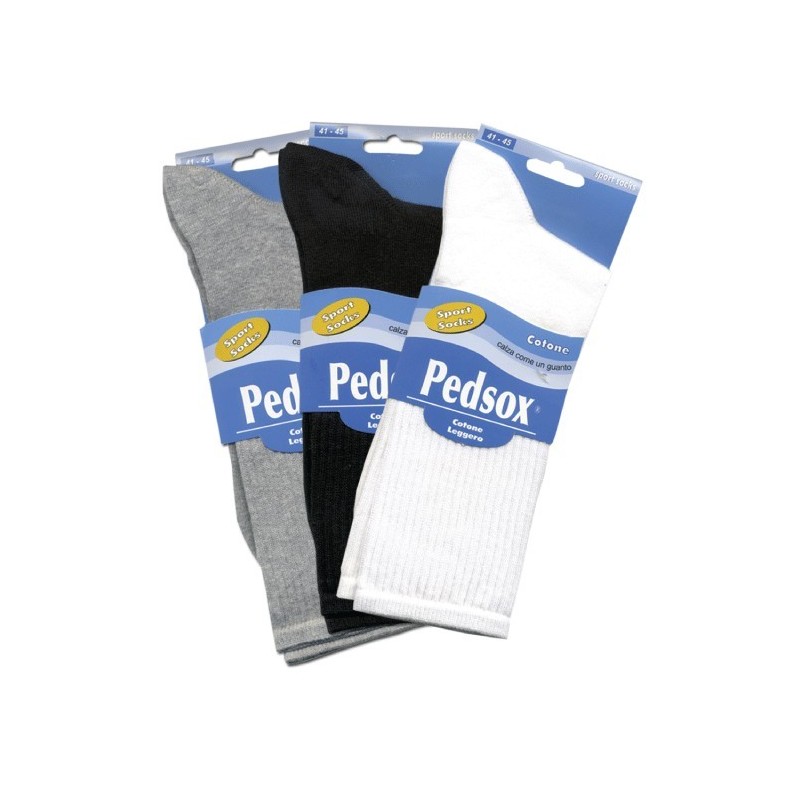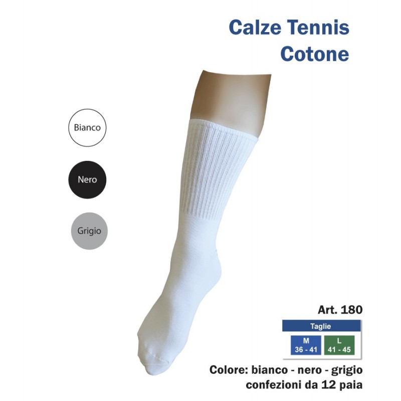 Calza tennis in cotone. Colore bianco, nero e grigio. Scatole da 12 paia.