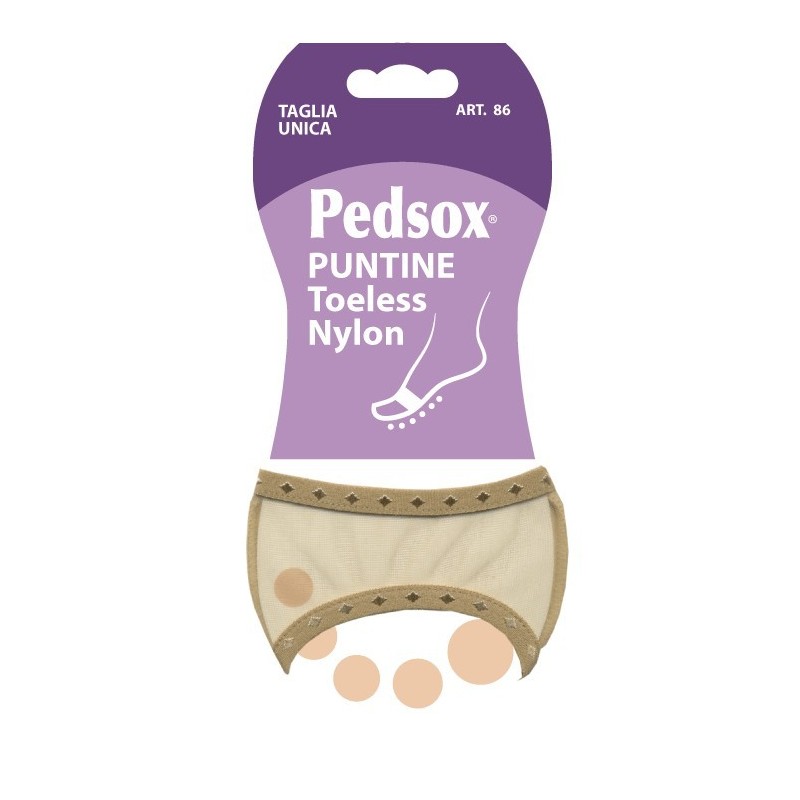 Toeless Nylon in taglia unica con plantare antiscivolo. Ideali da indossare con scarpe aperte sul tallone (tipo sabot). Scatole da 12 paia.